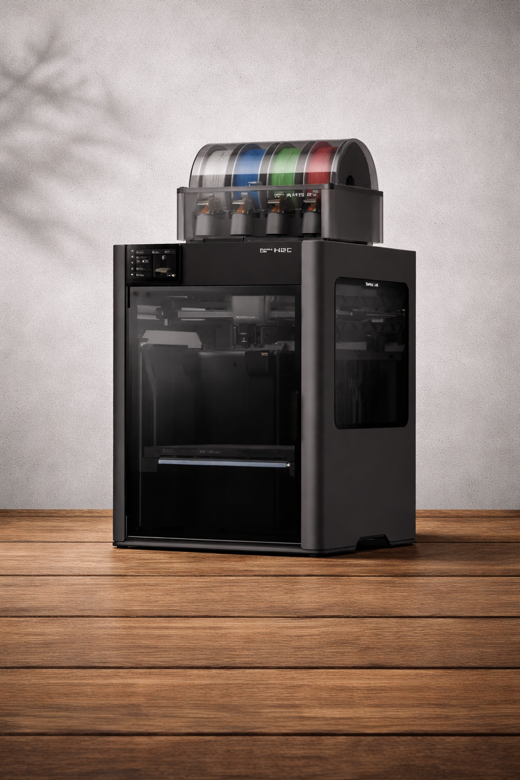 Der Bambu Lab H2C ist ein industriell ausgelegter 3D-Drucker mit Fokus auf Mehrmaterialdruck und maximale Effizienz bei Serienfertigung und komplexen Bauteilen.